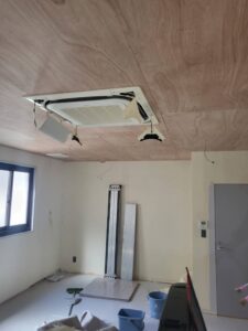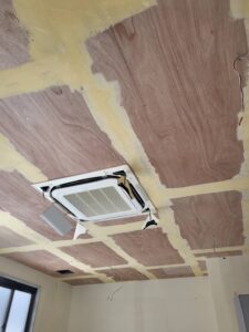まず、天井のクロスを張るためにコンパネで下地を張りました。