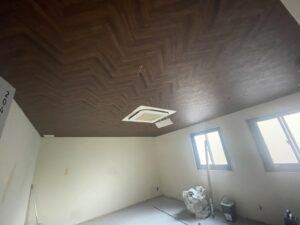 お客様のご要望に合わせたクロスを張り、天井クロスは完了になります。