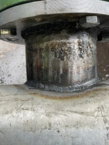 某工場にて配管工事を行いました。工場内撮影禁止の為、一部しか写真が撮れませんが、、、今回は既設の配管をそのまま一本新しい配管に取り替える作業でした。まず、現場にて配管の寸法を取ります。寸法を取ったら内